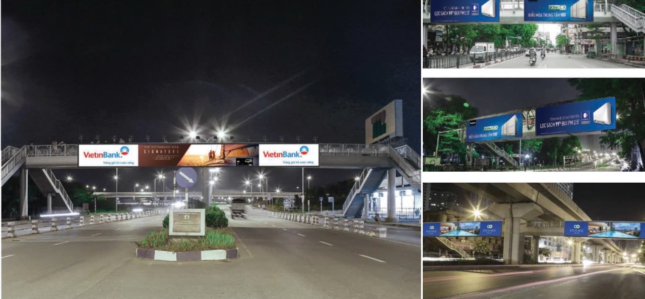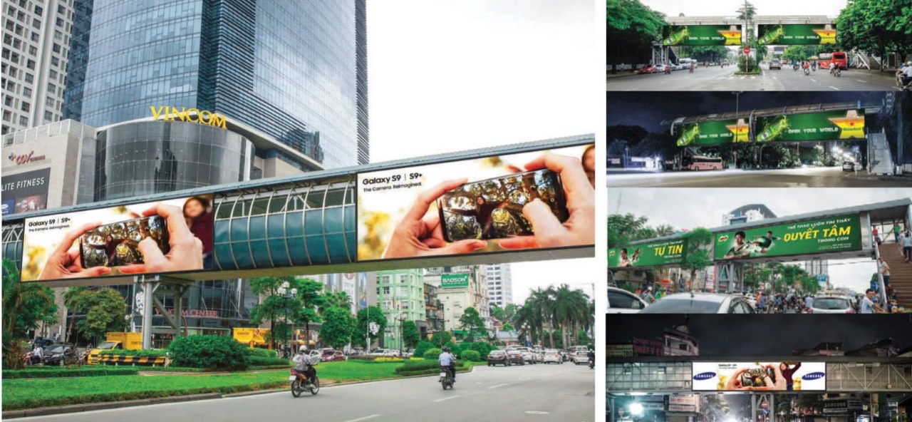 - Cho đến nay, dự án đã hợp tác cùng với nhiều các doanh nghiệp có nhu cầu quảng bá sản phẩm, thương hiệu của mình đến rộng rãi người tiêu dùng, có thể kể đến các chiến dịch quảng cáo nổi bật của rất nhiều nhãn hãng như: Nội thất Xuân Hoà; Ngân hàng Vietcombank; Pepsico; Nestle; Agoda… Cụ thể tại các điểm cầu bộ hành : Võ Chí Công, Trần Quang Khải, Ngọc Khánh, Giảng Võ, Láng Hạ, Đại Học Luật Hà Nội, Xã Đàn, Đại Học Thuỷ Lợi, Đại Học Công Đoàn, Học Viện Ngân Hàng, Thái Hà, ROYAL CITY………